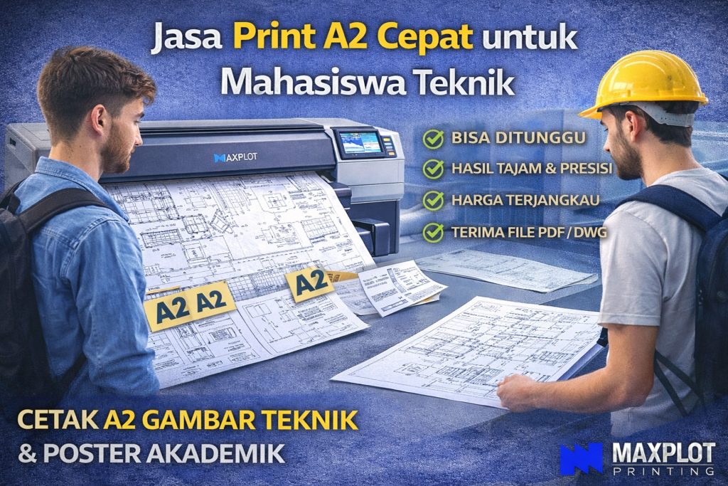 Di Maxplot Printing, kami menyediakan jasa print A2 cepat untuk mahasiswa teknik dengan hasil tajam, proses bisa ditunggu, dan harga ramah mahasiswa.