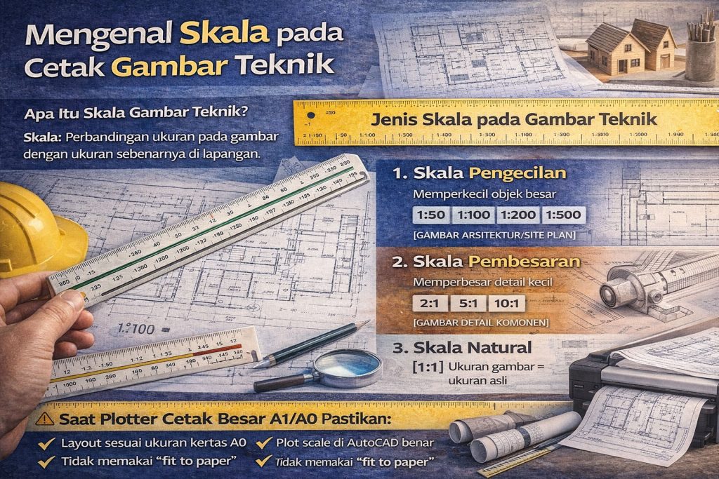 Memahami skala pada cetak gambar teknik merupakan hal penting bagi arsitek, engineer, kontraktor, maupun mahasiswa teknik. Skala digunakan untuk memperkecil atau memperbesar ukuran objek pada gambar tanpa mengubah proporsi aslinya. Dengan skala yang tepat, gambar tetap akurat dan mudah dibaca saat dicetak.